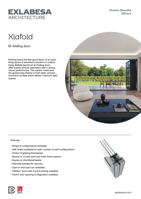 Exlabesa are one of the leading manufacturers of aluminium systems and bi-fold doors for the trade. We create aluminium bi-folding doors that are designed with both installer and customer in mind. With exceptional thermal performance and unbeatable tensile strength, these aluminium bi-folding doors are ideal for both commercial and residential projects.